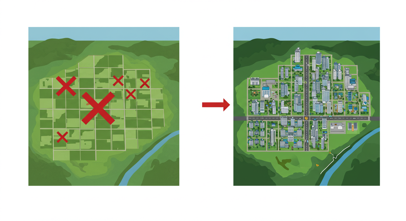 이 방식의 가장 큰 장점은 사업 속도가 빠르다는 것입니다. 모든 땅을 사업시행자가 소유하고 있기 때문에 복잡한 이해관계자들의 동의를 일일이 얻을 필요가 없어 개발 절차가 매우 신속하게 진행될 수 있습니다. 하지만 땅 주인 입장에서는 내 땅을 현금으로 받고 끝나는 것이기 때문에, 개발 이후에 생기는 땅값 상승, 즉 개발이익을 직접적으로 누리기 어렵습니다.